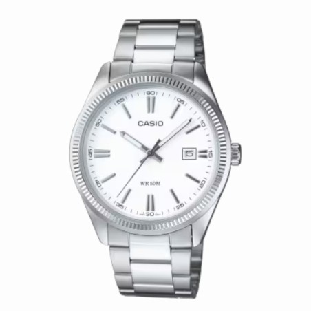 Clásico atemporal con esfera blanca, índices y fecha. El Casio MTP‑1302PD‑7A1V fusiona precisión japonesa con estilo minimalista versátil.