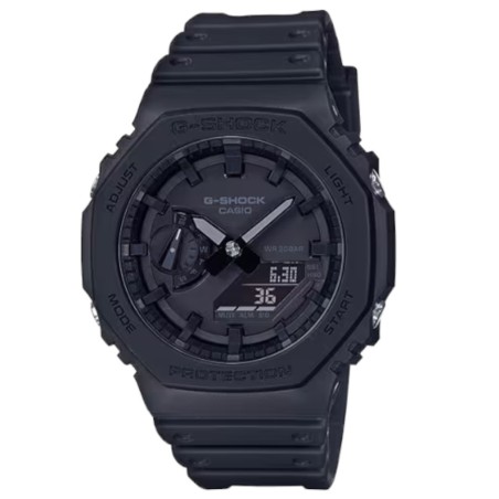 ¡Pura fuerza minimalista! El Casio GA‑2100‑1A1ER es un G‑SHOCK compacto, ultraligero, carbono-resina, 20 bar y look totalmente negro.