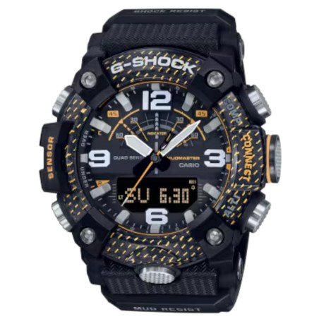 El Casio G‑Shock GG‑B100Y‑1A, perteneciente a la legendaria línea Mudmaster de la serie Master of G, combina una robusta construcción de resina y carbono con acentos visuales en amarillo de alto contraste. Diseñado para los entornos más extremos, este reloj es el compañero perfecto para aventuras todoterreno.