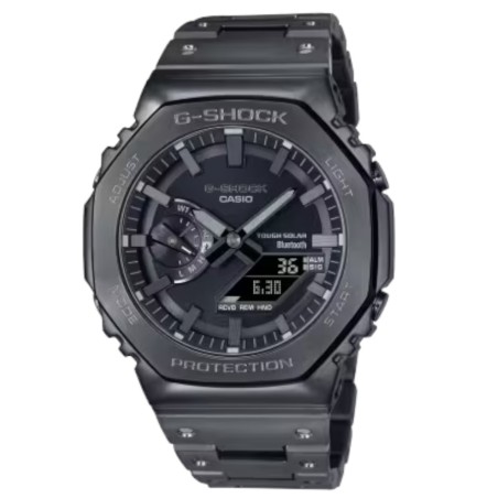 Hereda el icónico diseño octagonal del primer G‑SHOCK (DW‑5000C, 1983), reinterpretado en una estructura full‑metal construida en acero inoxidable con acabado IP negro. Su carácter sobrio y masculino refuerza nuestro claim “Precisión japonesa. Punto.”
