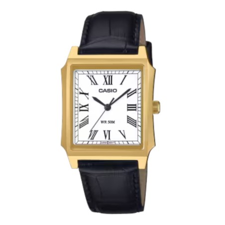 El Casio MTP-B190GL-7 es una declaración de elegancia atemporal con precisión japonesa. Diseñado para el hombre que valora la funcionalidad sin sacrificar el estilo, este modelo combina una caja de acero inoxidable en acabado dorado con una esfera blanca limpia y legible, que incorpora sutiles detalles modernos. Sus índices metálicos y manecillas doradas refuerzan su estética refinada, mientras que la correa de piel negra texturizada aporta un toque clásico y versátil.
